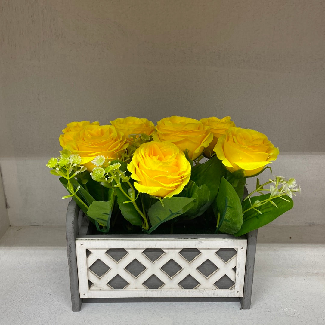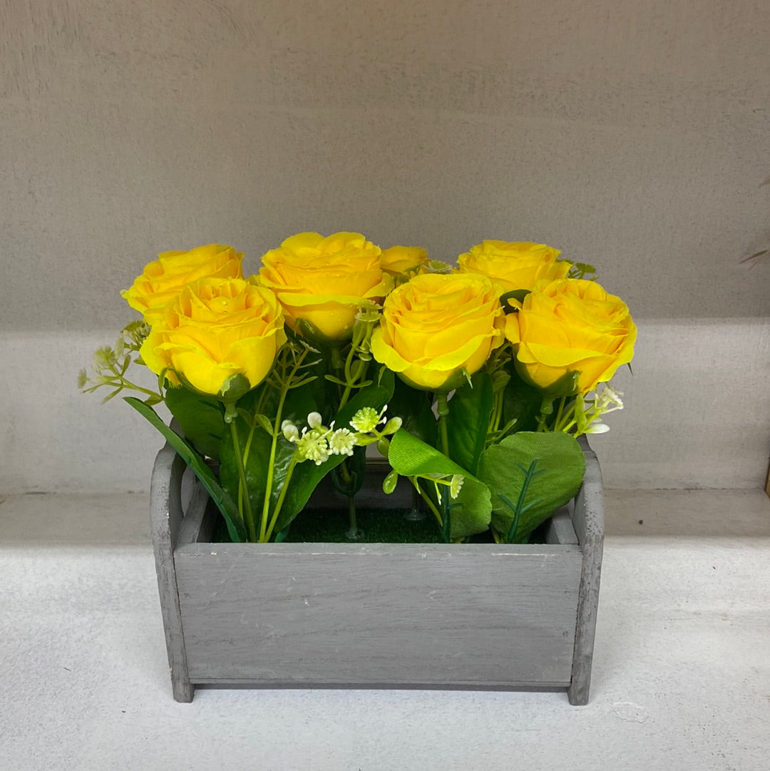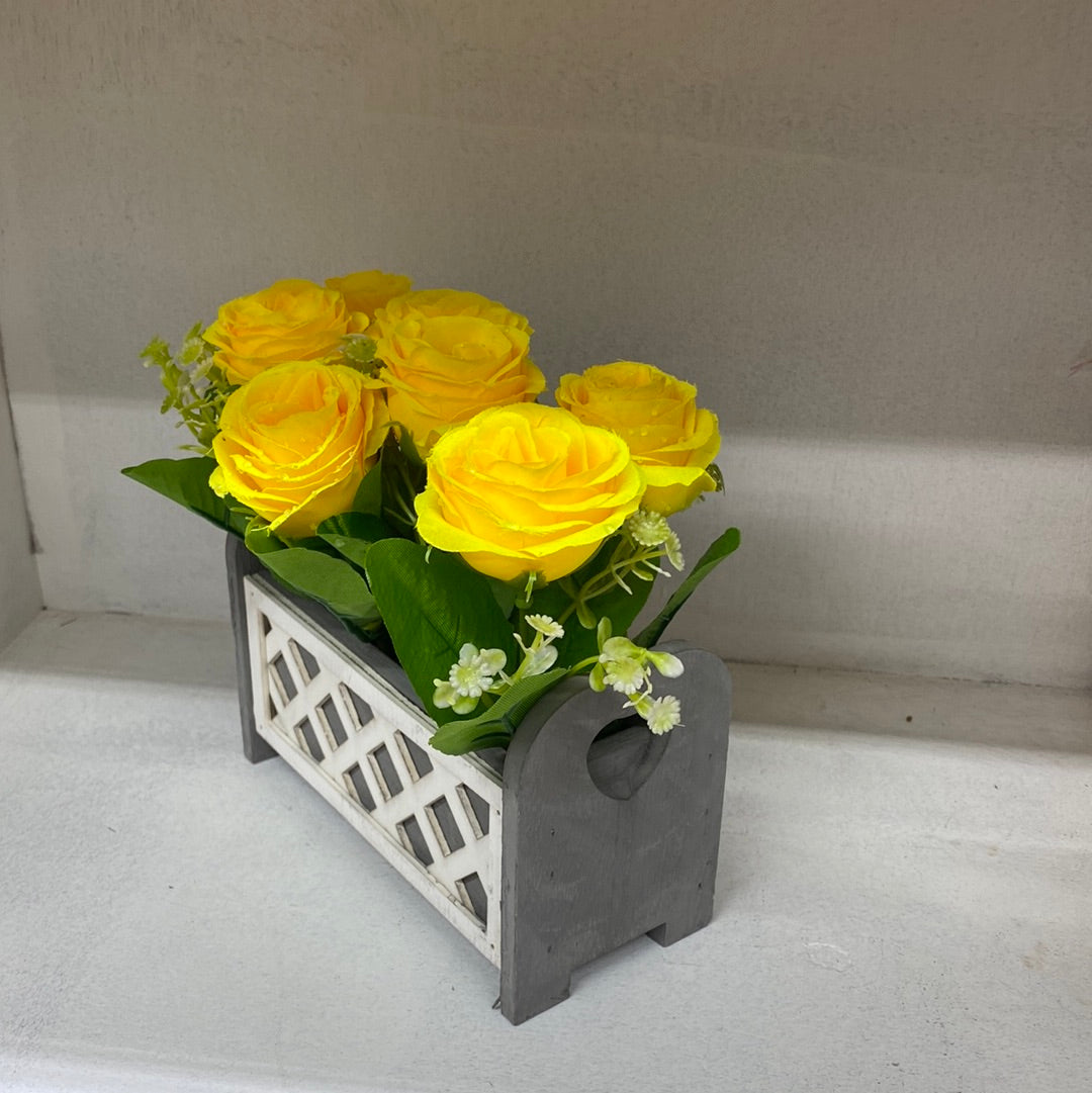 Artificial Plastic Plants Rose Yellow 仿真玫瑰盆栽