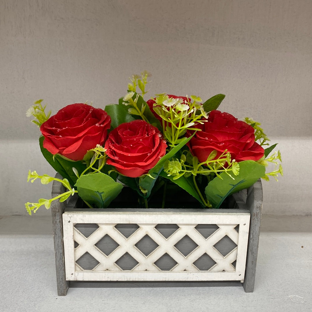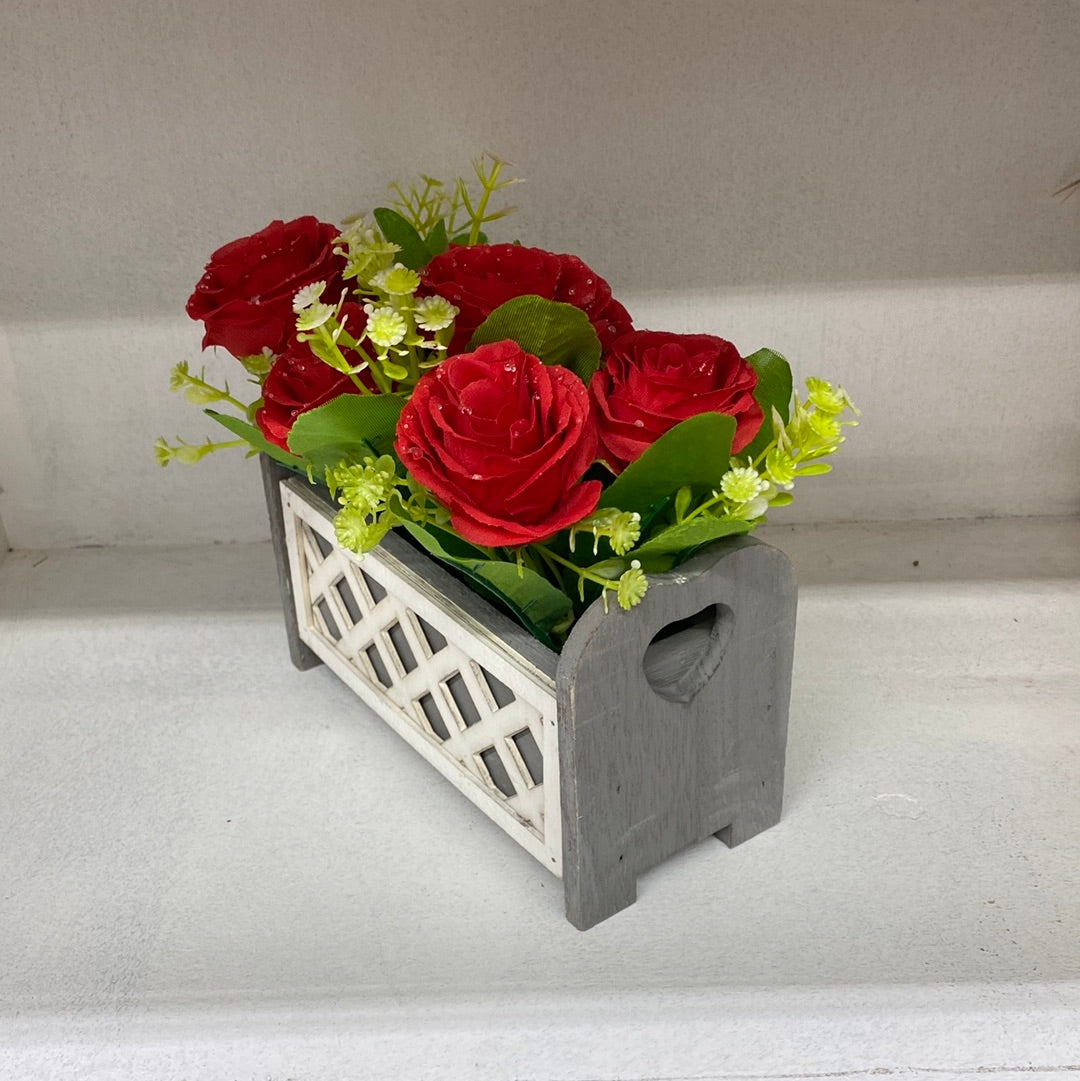 Introduce a touch of nature into your space with our Artificial Plastic Plants Rose Red. These lifelike plants require no maintenance and come with a beautiful wood vase, perfect for any room or office. No watering necessary, just enjoy the beauty and benefits of nature indoors.