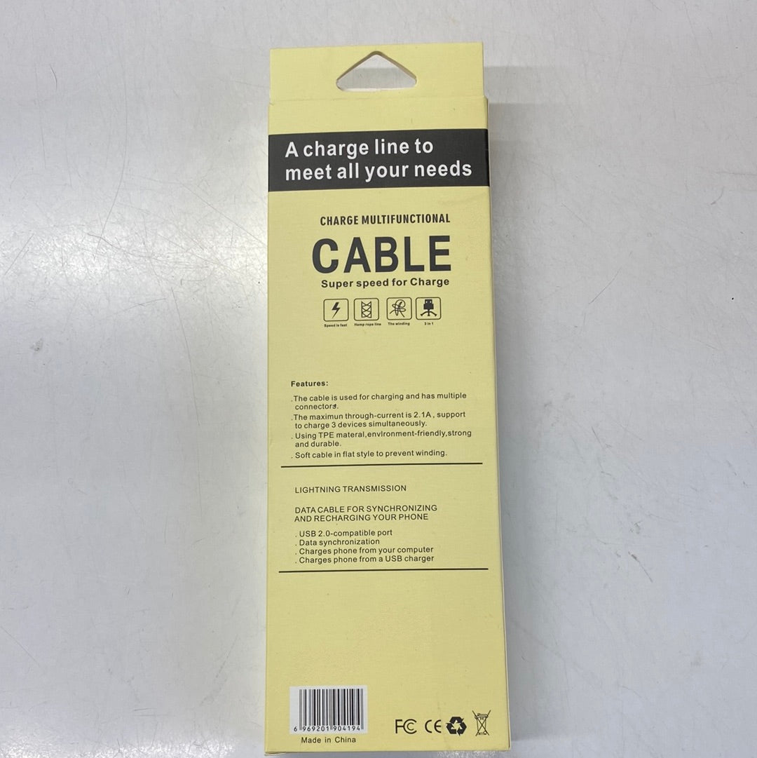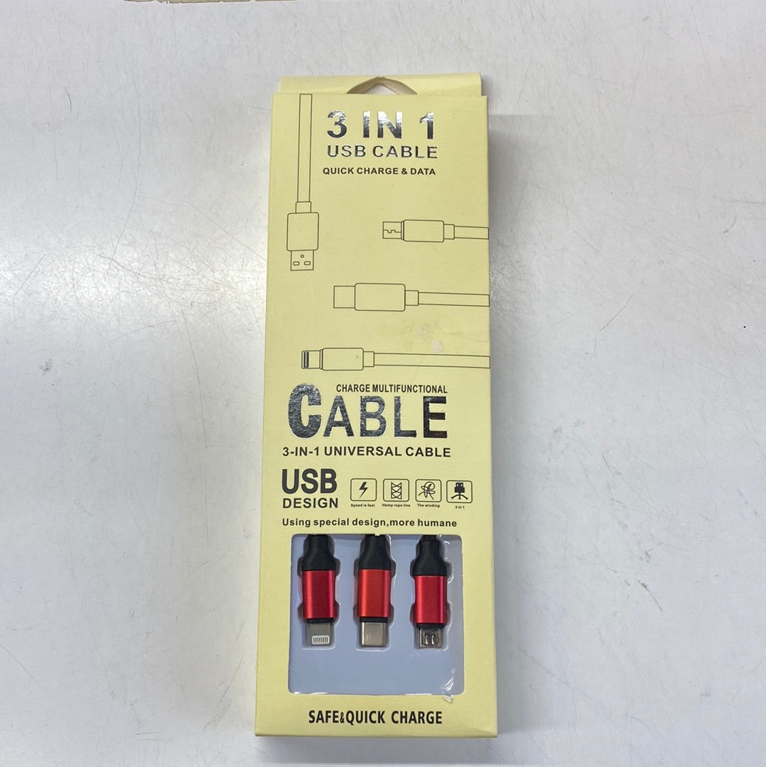 This 3in1 Universal Cable is a versatile solution for all of your charging needs. With three different connectors, it can charge multiple devices with ease. Its universal compatibility means you can use it with various devices, making it a must-have for any tech-savvy individual.