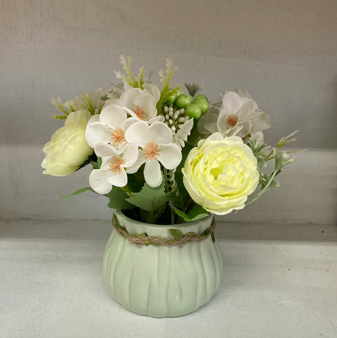 These Artificial Plastic Plants in mix color flowers are the perfect addition to any space. With their highly realistic look and durable material, you'll enjoy low maintenance and long-lasting beauty. The light green ceramic flower pot adds a touch of elegance to any room.